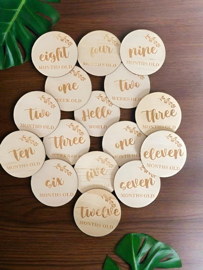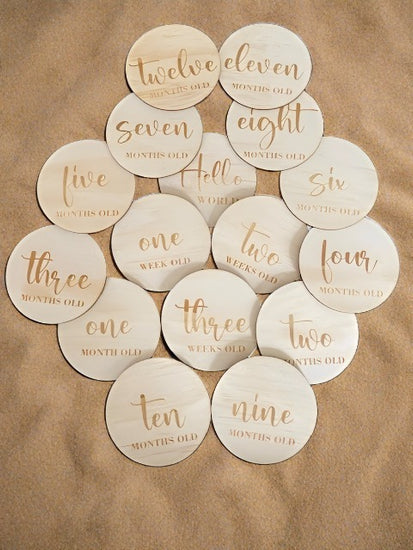 These beautiful, raw timber birth announcement wooden discs are perfect for announcing the age of your gorgeous little one.