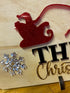 Acrylic lettering in black or white, and the Santa's sleigh & reindeers in red or green.