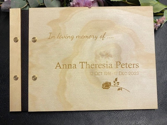 This stunning Bamboo or Premium Plywood guest book is a custom laser engraved and cut.