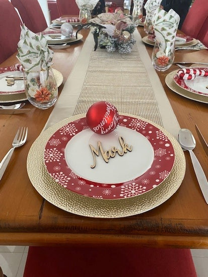 Wooden place names are a unique way of seating your guests and a simple seating plan and wedding favour or special occasion. Place guest name on a plate to add a personal touch to your table set up.